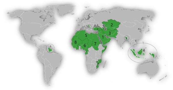 ASSAM’ın Model ASRİKA Konfederasyonu’nu oluşturan federasyonlardan ikisi olan Ortadoğu Bölgesel İslam Devletleri Federasyonu – ODBİF ve Kuzey Afrika Bölgesel İslam Devletleri Federasyonu – KABİF kapsamında toplam 18 ülke yer almaktadır;