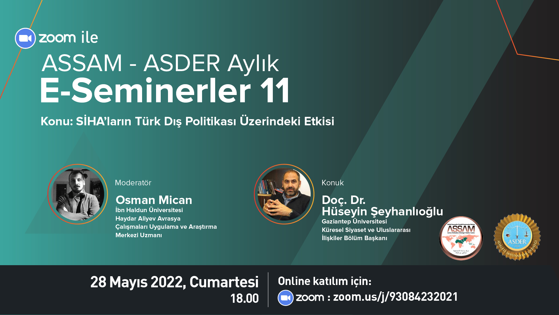 Seminerimiz 28 Mayıs Cumartesi günü 18.00’da Zoom ve Youtube üzerinden canlı yayınlanacaktır.